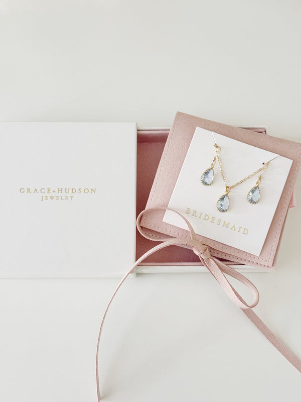 We were named "most classic bridesmaid jewelry gift" by Brides.com two years in a row in 2022 and 2023! We are known for our dainty designs and subtle, sophisticated color options. Some of our pieces are available in over 15 different colors! Need help selecting the perfect color to match your bridesmaid dresses? Send an email to stacy@graceandhudson.com with a photo of your bridesmaid dresses and we'd be happy to help.